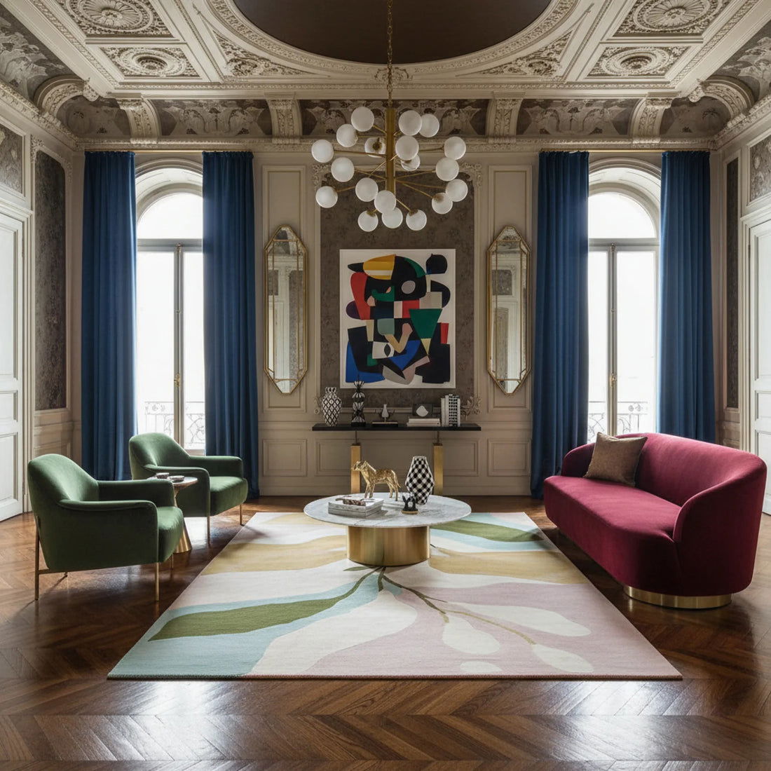Open layouts require clear zoning.Pastel area rugs define living, dining, or sleeping zones.Accent rugs highlight transitional spaces.Using both creates flow.